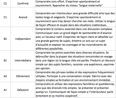 Comprendre sans effort. S’exprimer spontanément et couramment. Approcher du niveau “langue maternelle”.
